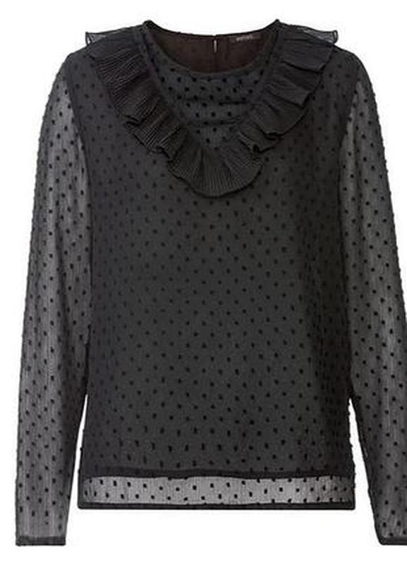Вид данной модели на теле нашел в белом цвете. Легкая праздничная блузка со всеми бирками. Блуза на легкой подкладке, свободная. Ткань верхнего слоя полупрозрачная, легкий фактурный горошек. Размер евро 40