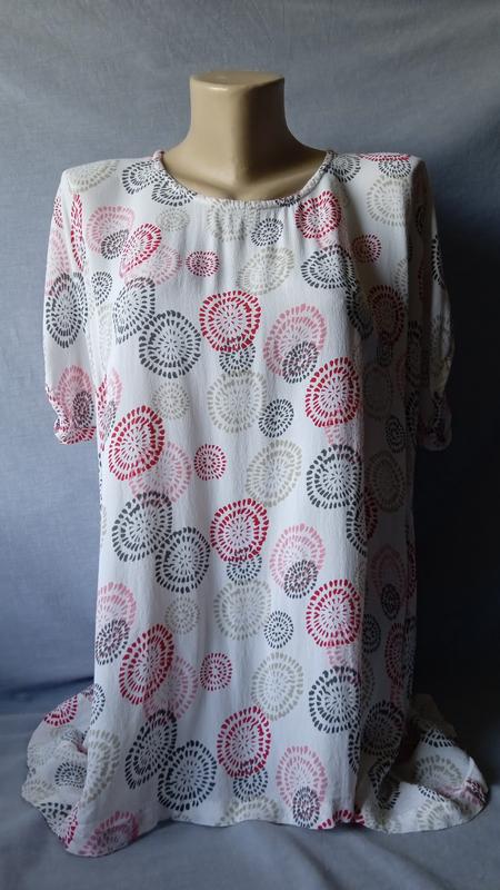 вискоза, нежная печать, длина65переда и75 по спинке, пог65,ширина по низу72