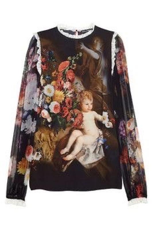 Блузка з легкої повітряної тканини з відомим принтом з янголами від дому Дольче Габбана Впізнаний відомий малюнок Заміри Ширина плечей 32 Обхват грудей 82-74 Довжина 62 Довжина рукава 64