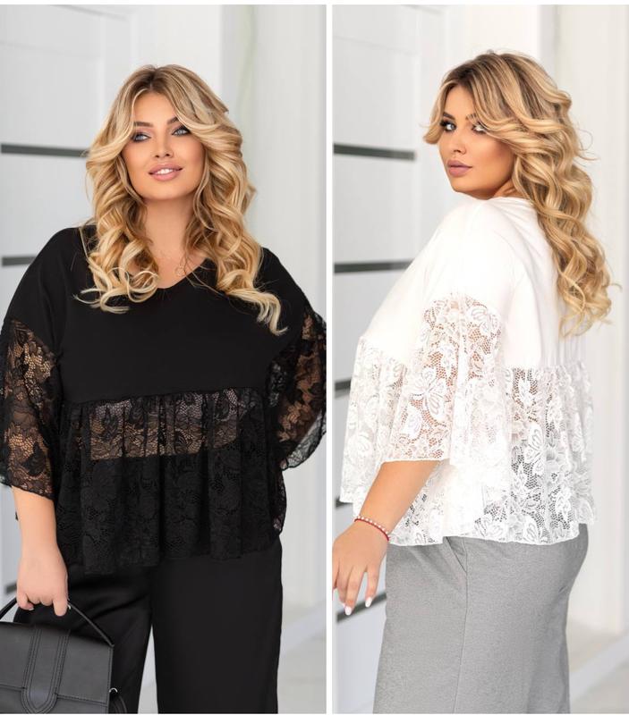 Блуза ткань кулир турецкий, кружево цвет молоко, черный размеры 50-52,54-56,58-60 замеры 50-52 р объем груди 132 длина кофты 60 54-56 р Ог 136 дк 61 58-60 р Ог 140 дк 62