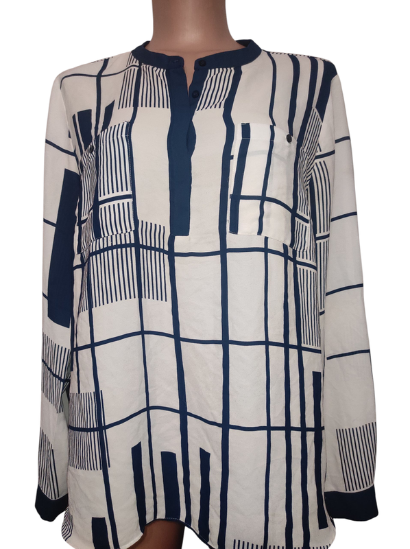 Блузка с длинными рукавами из креп-шифона пэ без нюансов. Длина от плеча 70см.+-, низ овальный. по низу 62см.+- п/о груди подмышки 56см.+- длина рукава 62см.+-