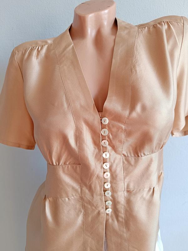 Paul & Joe – это французский бренд одежды, основанный Софи Мешали в 1995 году, известный своим сочетанием ретро-стиля и богемного шика, смелых принтов, практичного дизайна и использования высококачественных материалов. Блуза из натурального шелка от французского бренда, застежка на пуговицах с воздушными петлями, размер эвропейский 38, замеры: длина - 54 см, плечи - 36 см, ПОГ - 47-48 см, ПОТ - 41 см, ПО низ - 48 см, длина рукава - 21 см. ПОВЕРНЕНИЕ и ОБМЕНА ТОВАРА НЕМАЕТ! Подписывайтесь и смотрите другие мне товары, так Вы сможете найти интересные эксклюзивные вещи. Строй искренне рада сотрудничества с Вами.🙂