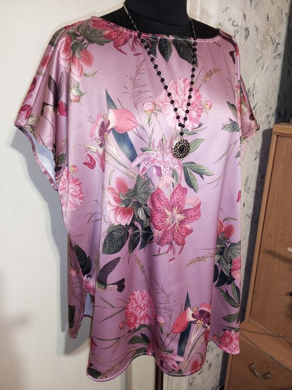 Красивая, нарядная блузка прямого кроя с слегка удлиненной спинкой, в цветочный принт и райские птицы, большого размера, Vintage Stories. Цвет - "попел розы" с ярким, утонченным принтом. Размера - нет, но ориентируйтесь по измерениям: ПОГ- от подмышки до подмышки - 62,5см тянется до 65см; ПОТ - 62,5/65см; ПОС - 62,5/65см + по бокам есть разрезы, длина от плеча спереди - 65см, от плеча сзади -68см; длина рукава - 22см, ПО бицепса -21/25см Одетая пару раз, ткань - гладкая и очень приятная на ощупь. Смотрите инши объёмы - есть такая же блузка в синем цвете чуть больше по размеру. Девочки, пожалуйста, переспрашивайте - сложи дополнительные фото и замеры. Возврата нет - объявления платные. См. другие объёмы -есть аналогичные, длинные, нарядные,вечерные платья, блузы, а также 90% одежды большого размера. Подписывайтесь-ежедневные обновления одеждой больших размеров не только. Покупая несколько товаров -Вы экономите на пересылке, лоты комбинируются в одну посылку. Перед покупкой - прохватка: ознакомиться с рубрикой "ПРО МЕНЕ" Состав: полиэстер - ткань гладкая и приятная на ощупь Доставка: Перешлю в ин. города за Ваш счет-при полной оплатке на карточку