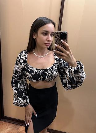 Укорочена блуза з широким рукавом Стан хороший Розмір С Тканина Котон і Льон
