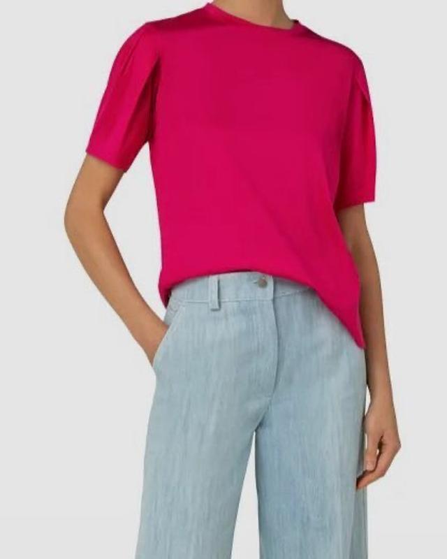 Жіноча рожева шифонова блуза з широкими рукавами у розмірі L-XL. Стан - ідеальний. Склад: 100% поліестер. Довжина - 64-70 Бюст - 52 По лінії низу - 55 Довжина рукава - 27