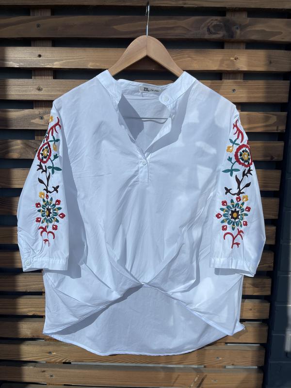 🌸 Белая блузка с вышивкой 🌸 Нежная и стильная блузка, которая сочетает комфорт и традиционные мотивы. Яркая вышивка на рукавах добавляет образу особый шарм и подчеркивает индивидуальность. ✅ Параметры: • Обхват груди: 110 см • Длина переда: 51 см • Длина спинки: 66 см (удлиненный крой – удобно и стильно) • Длина рукава: 37 см 🔹 Легкая, приятная к телу ткань 🔹 Универсальный белый цвет – легко сочетать с джинсами, юбками или классическими брюками 🔹 Идеально подходит как для повседневных образов, так и для праздничных выходов ✨ В этой блузке вы всегда будете выглядеть ярко и неповторимо!