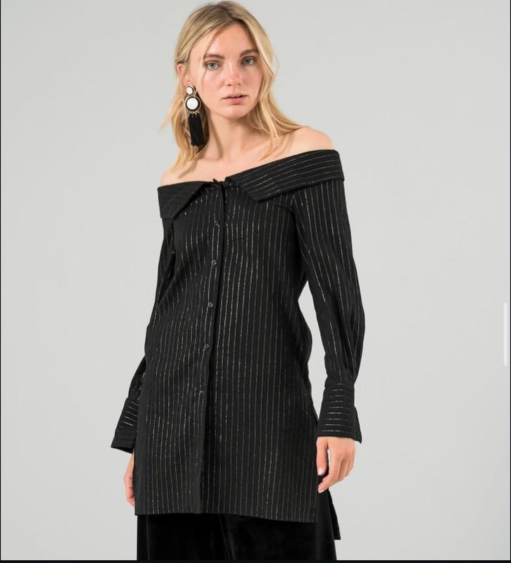 Елегантна сорочка зі спущеними плечима, декорована золотою ниткою від українського бренду Volan Дуже жіночна та одночасно стримана. Розкішно виглядатиме як в офісному аутфіті, так і як частина вечірнього гардеробу. Тканина бавовна Розмір S