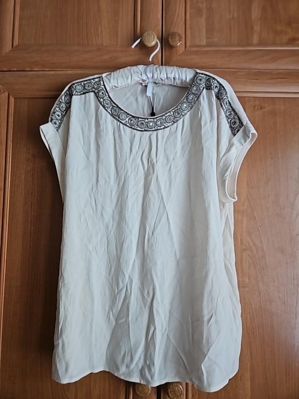 Новая блуза молочного цвета. Даже в комплекте бисер запасной. Натуральная. Довжина-67 см, в грудях-51, внизу-57 см.