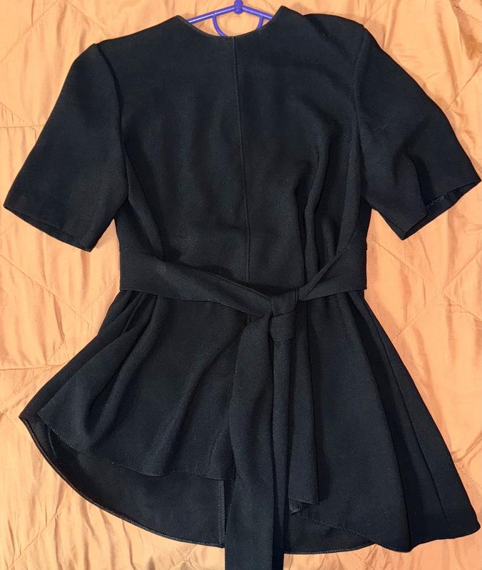 Стильна чорна блуза від Zara, яка стане універсальною основою вашого гардероба. ✅ Має пояс, що красиво підкреслює талію ✅ Легкий приталений крій з розкльошеним низом ✅ Актуальна довжина рукава (короткий) ✅ Базовий чорний колір — легко поєднувати з будь-яким одягом Підійде як для офісу, так і для повсякденних образів чи вечірніх виходів. Розмір М Стан відмінний