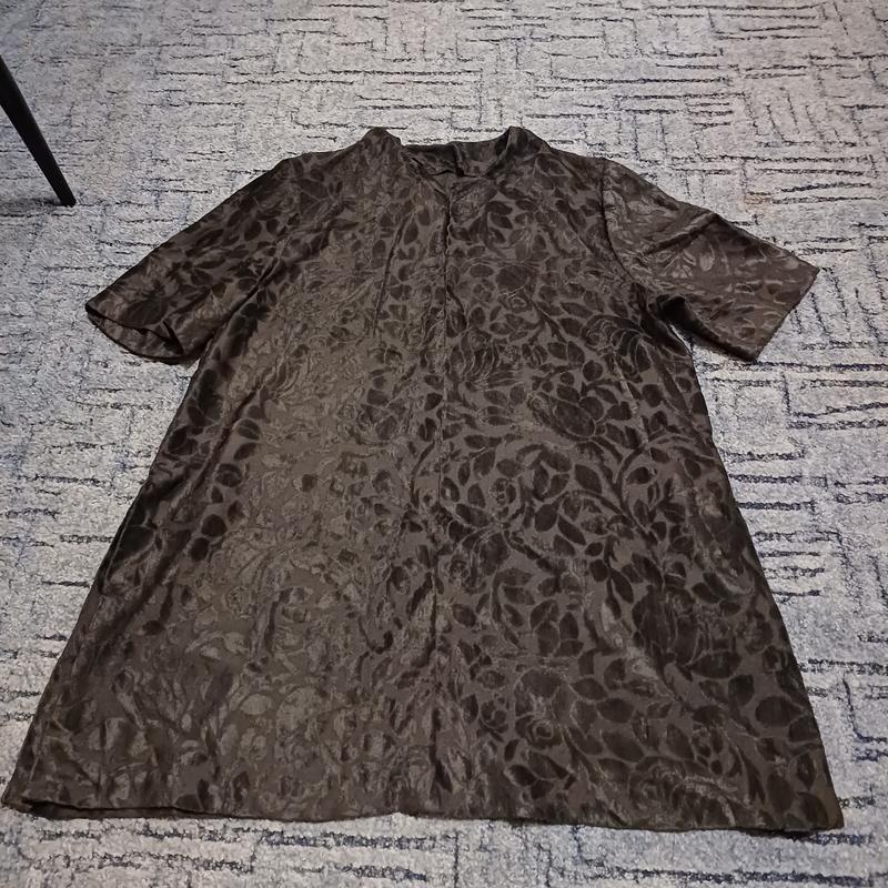 удлиненная черная блуза воротник стойка рукав короткий збоков есть разрезы подойдет на 14-16