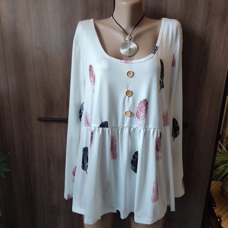 Новая блуза без бумажной этикетки, приятный качественный трикотаж, симпатичный нежный принт, аккуратный пошив, ПОГ- 65-68 кокетка на резинке-59-65 длина-73 рукав- 63 плечи-48