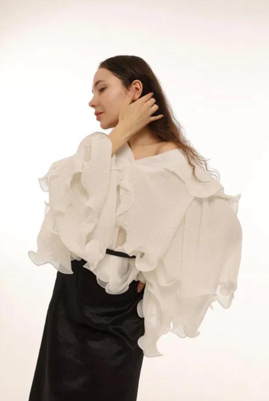 Біла блуза з воланами обʼємна . Звертайтеся для уточнення деталей.
