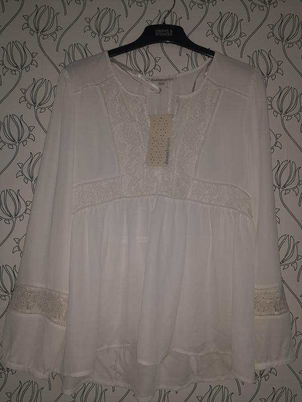 Новая белая блуза с кружевом в размере Л.