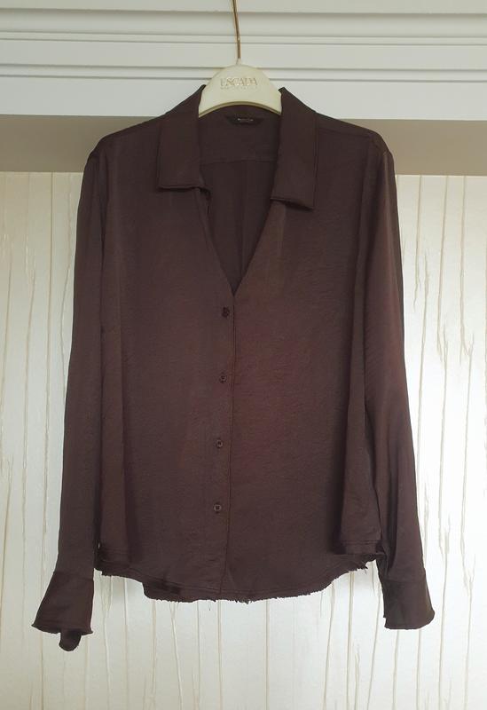 Блузка очень красивого цвета темного шоколада. Интересные детали - необработанный край низа, рукавов и кокетка сзади.