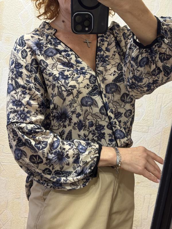 Дуже гарна жіночка блузка в ідеальному стані, з тоненької батистовки, з шикарним буфовим рукавом. На жаль бірки зрізані по складу і по виробнику. Розмір М Довжина - 67 см Ширина по грудях - 51 см Плечі - 42 см Рукав - 55 см