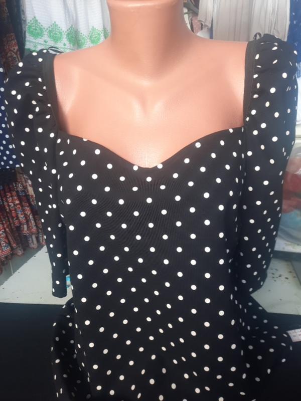 Блуза в горох выскоза плотный трикотаж пог 55 поб 58 рукав 40 длина 60