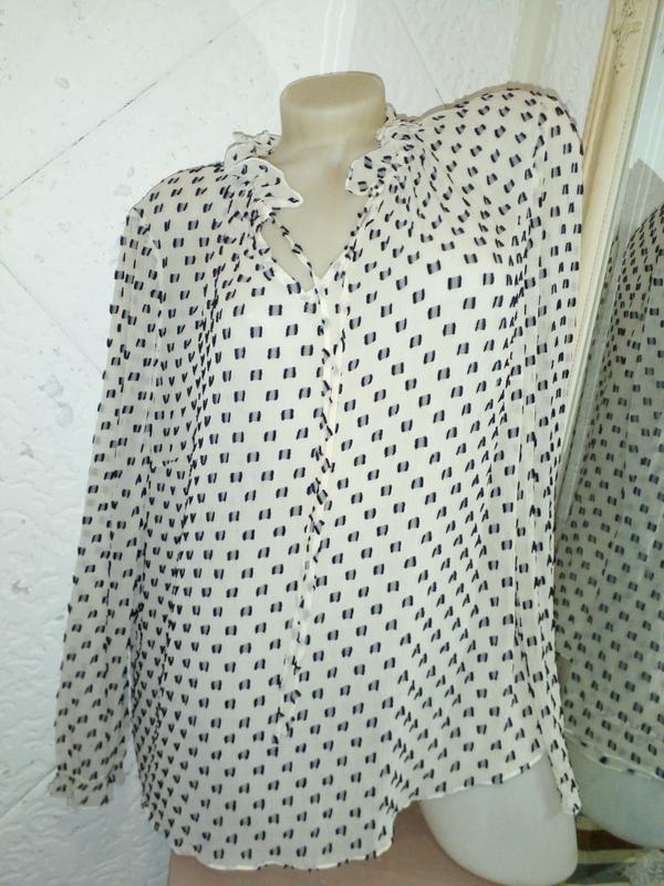 Без недостатков. Полупрозрачная, слегка эластичная. Цвет блузы бежевый. Резинки на рукавах испорчены, следует заменить. Длина по спине 61см. Длина рукава 63см. Полуобхват по груди 60см. Плечи 43см. Полуобхват по низу 60см. Размер указан 18 это наш 54.