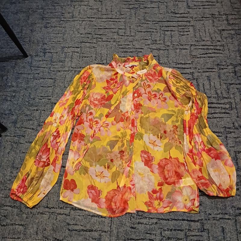 Яркая блуза рукав длинный и очень интересного кроя на гудзиках воротник стойка + завязки связкиблуза прямого кроя размер 12-14