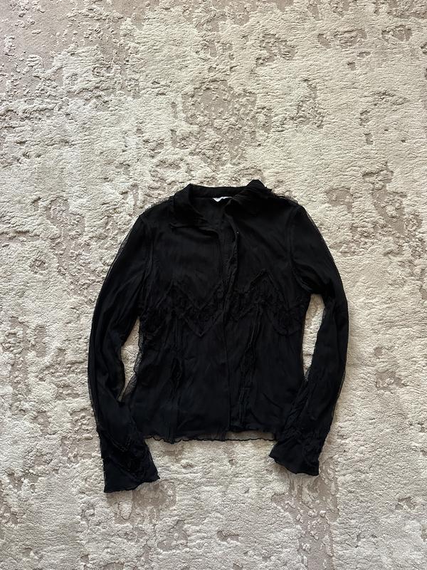 Красива прозора блуза. Фірма peruna, розмір 10/с/м. Довжина 56, пог 42, плечі 37, рукав по зовн і внутр швах 61 і 44. Якщо є питання- звертайтесь!