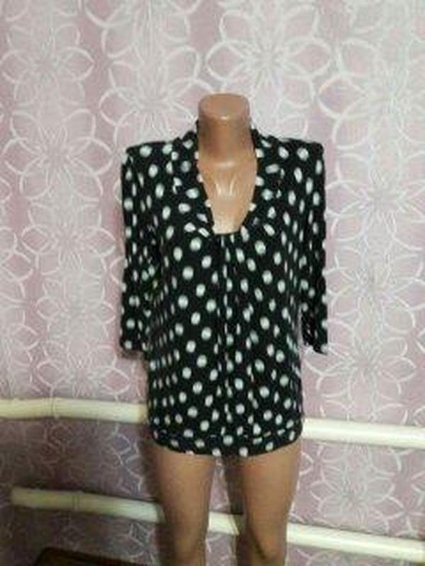 БЛУЗА СТИЛЬНАЯ В ГОРОХИ.НОВАЯ. ТКАНЬ ТОНКИЙ ТРИКОТАЖ .СМОТРИТСЯ ОЧЕНЬ КРАСИВО.БЕЗУМНО СТРОЙНИТ ФИГУРКУ. РАЗМЕР 50-52.МЕРОЧКИ ПО ЗАПРОСУ.