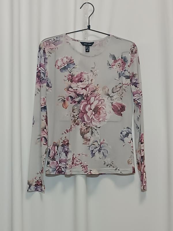 Сетка стрейч с цветочным принтом. Приятная на ощупь. Красиво тянется в разные стороны. ПОГ 47см, ПОТ 42см, длина 57см, плечи 38см, рукав 60см. Стан идеален без нюансов
