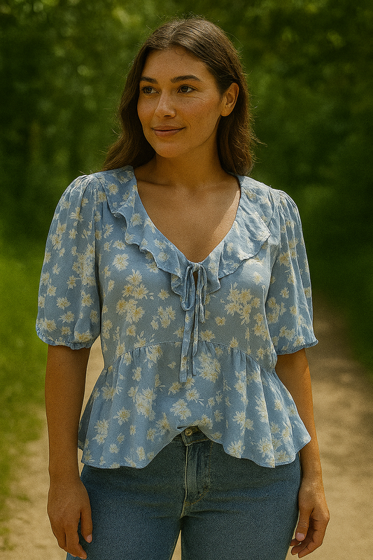 Голубая блуза с принтом ромашек от new look