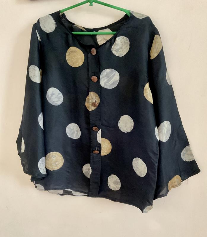 Очень красивая блуза свободного кроя оригинал max Mara Шелк средней плотности , не мнется Актуальный трендовый принт Застегивается спереди на пуговицах за счет этого ее ложно носить в качестве жакета Широкие рукава прямого кроя Состояние идеальнейшее