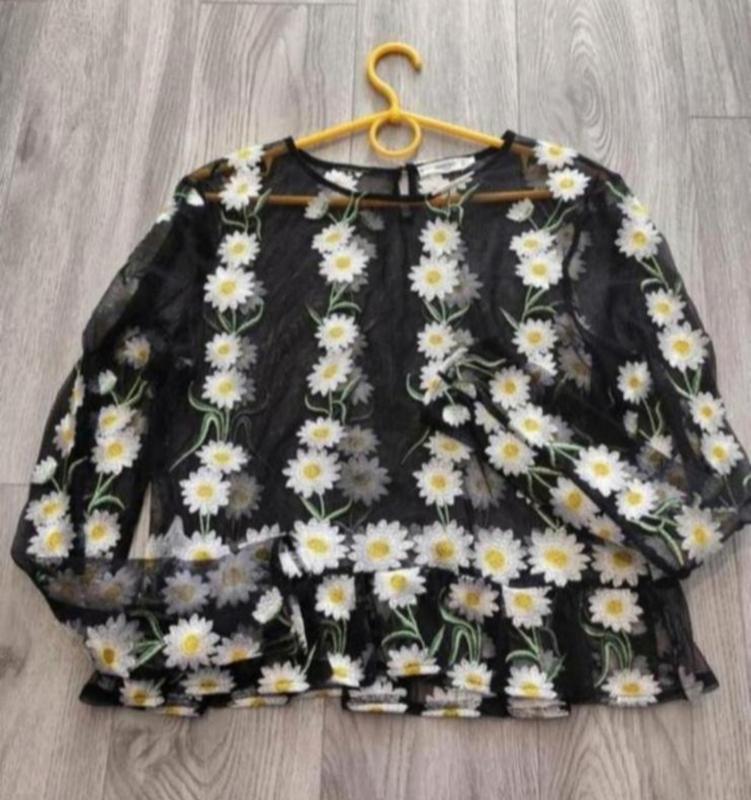 Блуза, сетка, топ mango с ромашками. стан идеален. невероятно красивая стильная вещь.