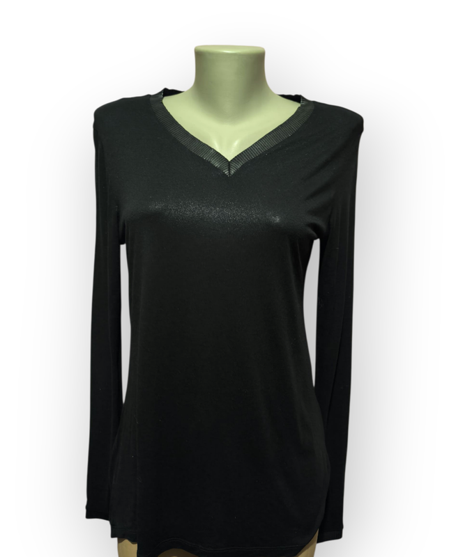 Блуза лонгслив нарядный черный с металлическим блеском geisha