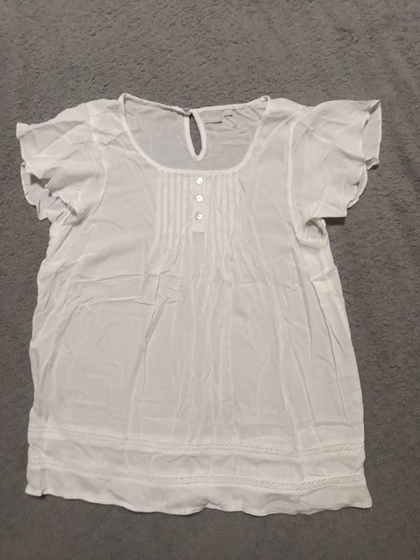 Блуза белого цвета, с мягкой натуральной тканью. Длина по спинке 60см, ПОГ 47см.