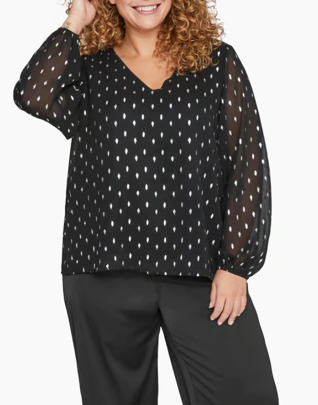 Очень элегантная блуза. Рукава и низ на резинке. Цвет черный, горошины нанесены мазками залотисто-серебристого цвета, зависит от света. Полуобъём груди 71 Полуобъём бедер до 76 длина 77 рукав от горловины 77