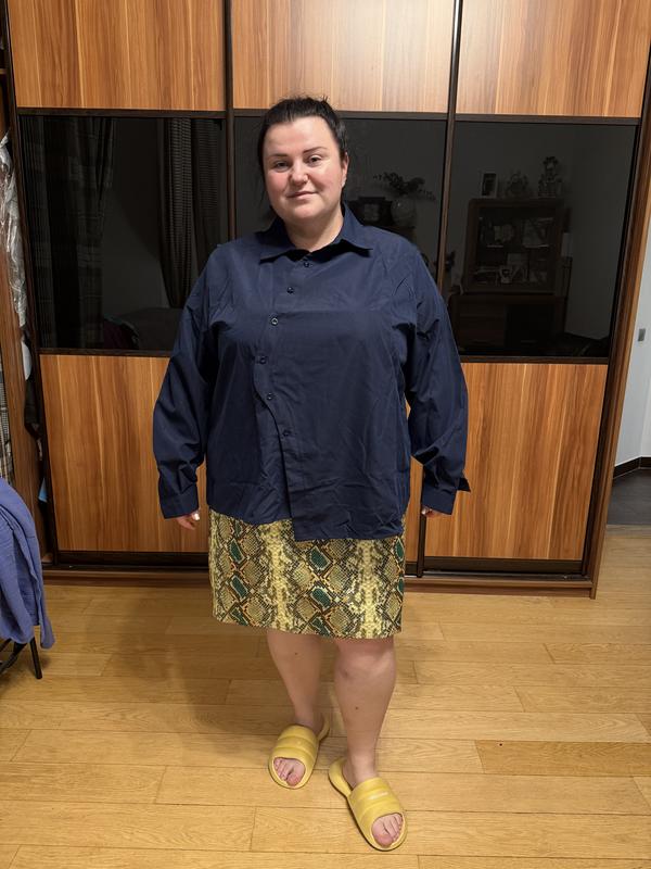 Блуза синя з асиметричною застібкою, вільного крою. Розмір 60-62