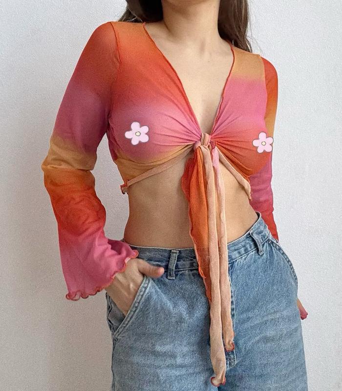 Топ на завʼязках в сітку з широкими рукавами, розмір Хс-м