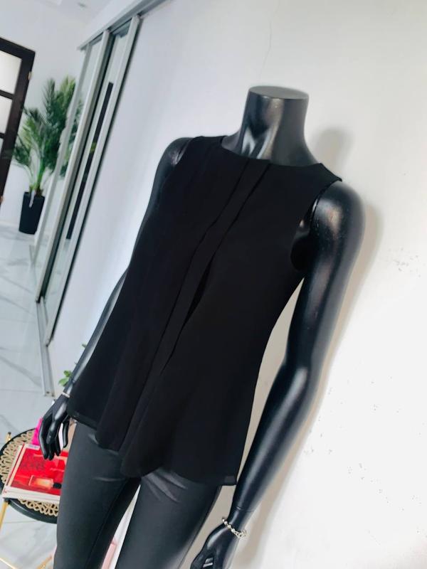 Минималистичный черный топ-майка от ARMANI EXCHANGE. Выполнен из 100% полиэстера с подкладкой, что обеспечивает комфорт и хорошую посадку. Модель без рукавов, с округлым вырезом горловины и элегантными вертикальными складками на передней части. Идеален для создания строгого, но женственного образа.