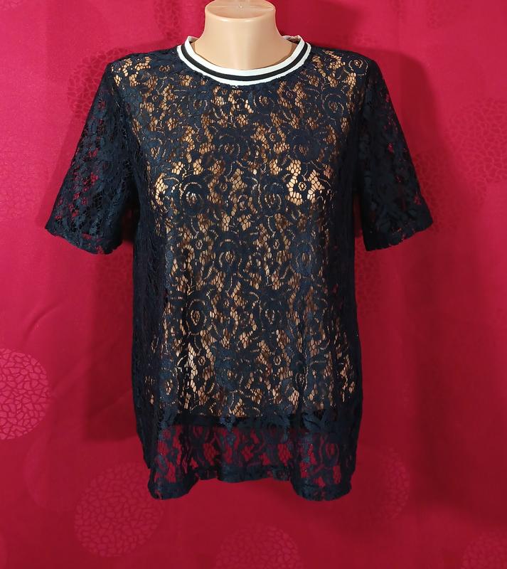 Кружевная блуза ONLY — размер M Стильная оригинальная кружевная блуза от бренда ONLY. Черный цвет, аккуратный контрастный воротник и красивое плотное кружево. Сидит очень элегантно и подчёркивает фигуру. Характеристики: Бренд: ONLY - Размер: M Плечи : 38 см Полуобхват груди : 49 см Длина рукава от плеча : 24 см Длина по спинке от верха плеча : 60 см Материал: кружево (бирка со составом срезана для удобства ) Цвет: чёрный Короткий рукав Контрастный воротник в спортивном стиле Красивый ажурный низ