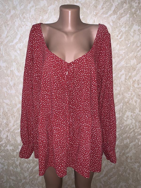 Стильна блуза з завʼязками спереду в горошок батал великий розмір