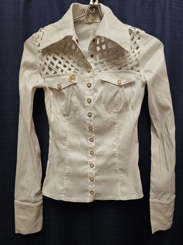 Стрейчевая,очень хорошо тянется.Длина-50 см,пог-33 см,длина рукава от плечевого шва-62 см.