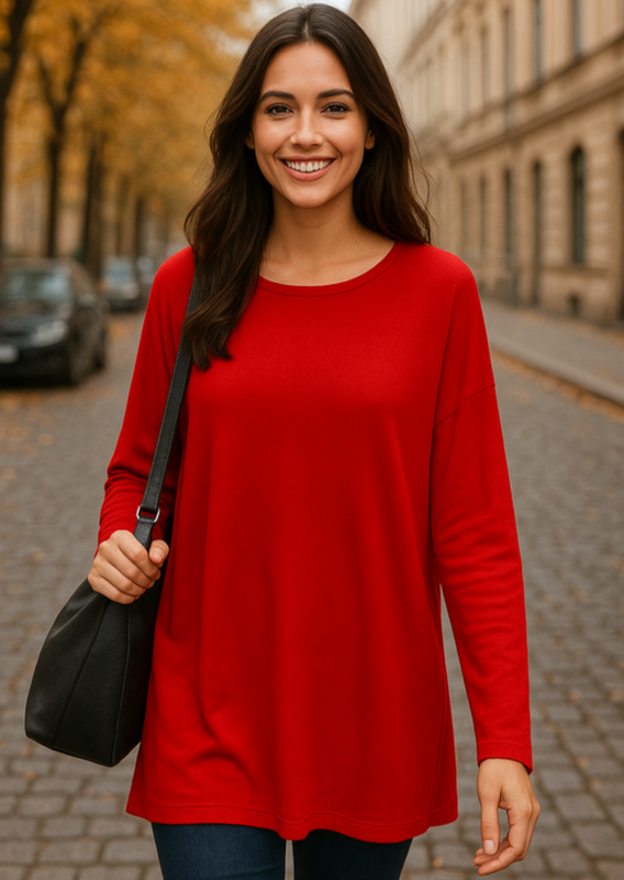 Эта блузка насыщенного красного цвета - настоящий акцент осеннего образа. Изготовлена из мягкой, комфортной ткани, она имеет прямой силуэт, гармонично сочетающийся с джинсами или юбкой. Длинные рукава добавляют элегантности, а классический круглый вырез подчеркивает линию шеи. Идеальный выбор для прогулок на природе, встреч с друзьями или ежедневного настроения с ноткой яркости. Длинный рукав, линия плеча приспущена Состав: вискоза Эффектов: нет. ЗАМІРИ: 🍀ДОВЖИНА : 75 СМ 🍀ДОВЖЕННАЯ УДОБНАЯ ОТ ГОРЛОВКИ: 66СМ 🍀ПОВНИЙ ОБʼЄМ ГРУДЕЙ : 150 СМ 🍀ПОВНИЙ ОБʼЄМ ТАЛІЇ : 140 СМ 🍀ПОВНИЙ ОБʼЄМ СТЕГОН : 134 СМ Ткань тянется. СТАН идеален, без дефектов. Размер : xl-2xl-3xl (50- 52-54)