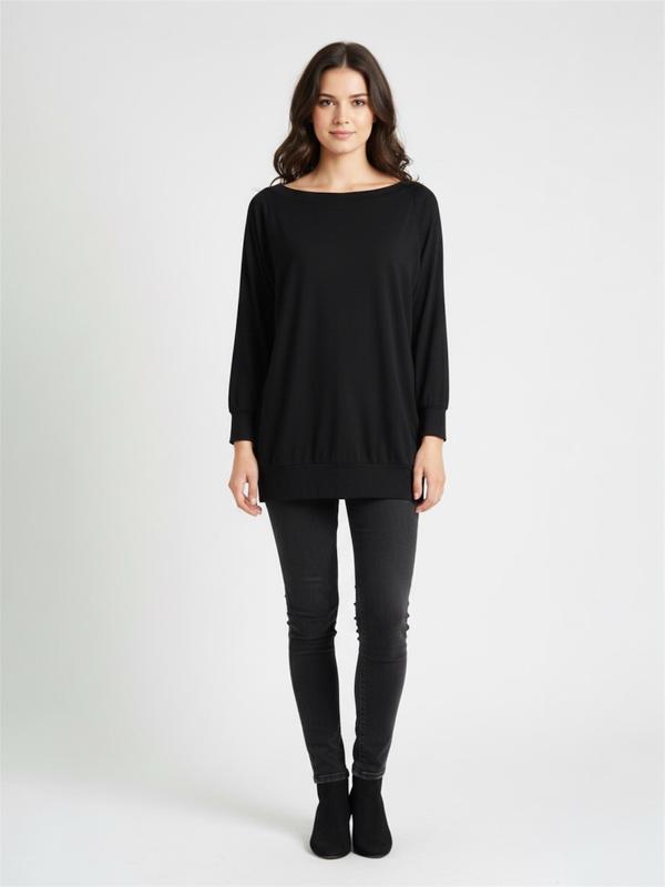 Нова стильна блузка (лонгслів) вільного крою. М’яка, приємна до тіла тканина, добре тягнеться. Ідеальна базова річ під будь-який низ. • Стан: Нова (з паперовою біркою) • Бренд: New Choice • Розмір: S (36 / 44) • Склад: 95% віскоза, 5% спандекс Заміри: • Довжина: 70 см • ПОГ (пахви): 49 см • Рукав (від горловини): 60 см