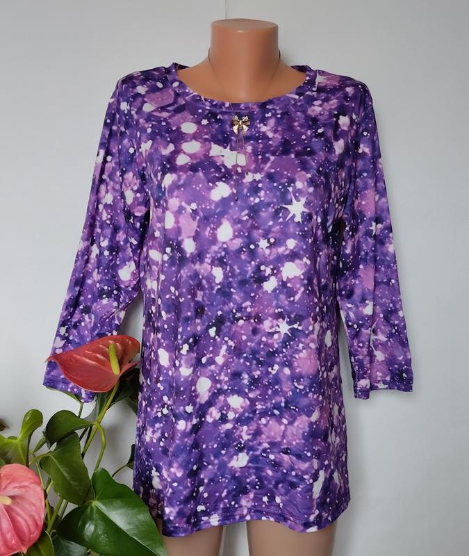 Классная яркая футболка блуза, бирки со составом ткани отсутствуют, ткань мягкая. Замеры: длина 69 рукав 47 пог 52-62 пос 51-61