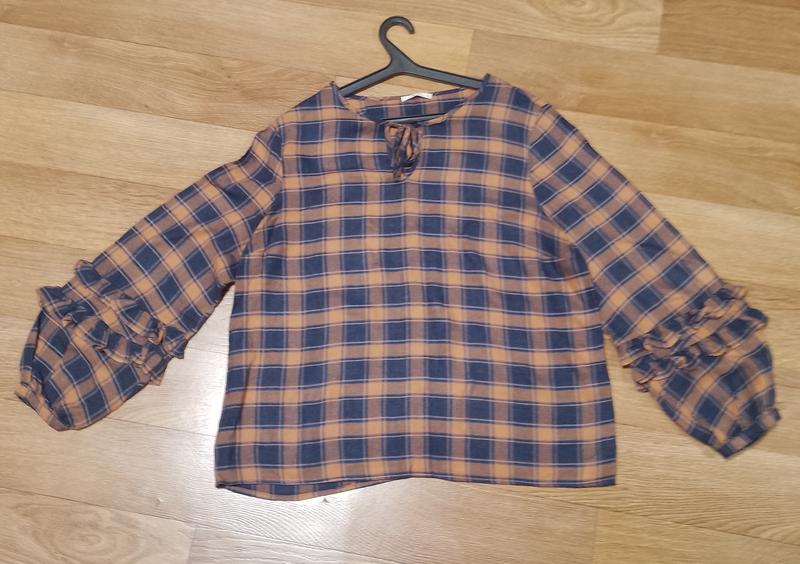 Блузка в клетку с длинным рукавом. Плечи 44см полуобъем груди 57см длина рукава 61см длина изделия 67см