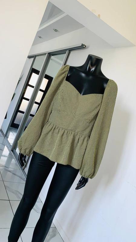 Стильная блузка New Look TALL (для высоких) в оливково-черную клетку (гингем). Модель имеет соблазнительный квадратный/сердцевидный вырез, пышные длинные рукава и эластичную баску/сборку на талии для идеальной посадки. Характеристики: • Бренд: New Look (линия TALL - для высоких) • Состав: 100% Полиэстер • Страна производства: Марокко • Размер UK: 18