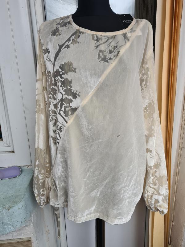Очень красивая блуза. Нежный бархат с организованной и золотистыми люрексными полосками.С одной стороны стягивается.Есть недостаток-маленький пропуск бархат спереди, на последнем,фото.