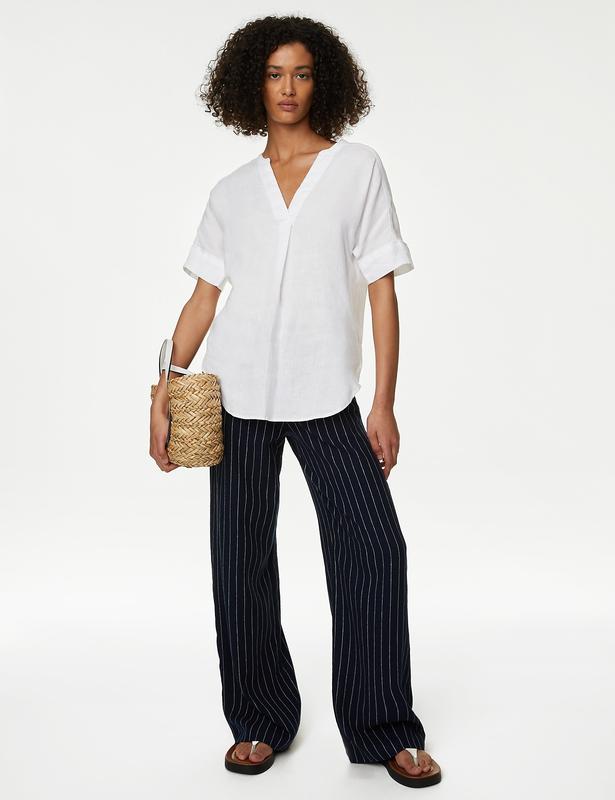 Блуза с V-образным вырезом Mark's & Spencer. Новая, без бирки. Размер XXL ( UK Майор 100% льон Длина - 71/77 см. Рукав от горловины - 43 см Пог- 65 см.