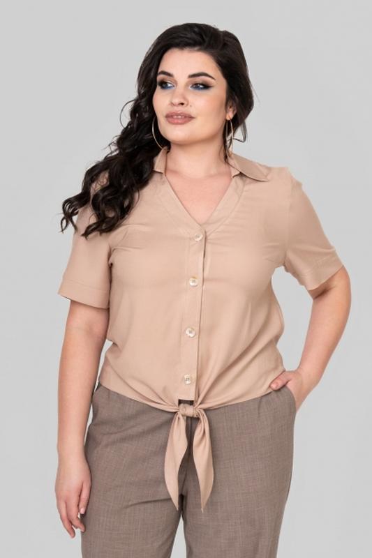 Блуза прямого силуэта без подкладки. Выполнена из штапеля. Ткань легкая и тактильно приятная, но также обладает повышенной прочностью и практичностью, что отлично подходит летним моделям для повседневного использования. Рукав втачной на манжете. Воротник отложной на стойке. Застежка - планка на пуговицу. По низу блуза на завязках, которые можно завязывать или просто заправить в брюки. 50: ОГ - 108см, ОТ - 108см, ОС - 116см; ширина рукава - 20см; ширина спинки - 39см; р.52: ОГ - 112см, ОТ - 112см, ОС - 120см; ширина рукава - 20см; ширина спинки - 40см; р.54: ОГ - 116см, ОТ - 118см, ОС - 124см; ширина рукава - 21см; ширина спинки - 41см; р.56: ОГ - 120см, ОТ - 122см, ОБ - 128см; ширина рукава - 21см; ширина спинки - 42см;Длина рукава: 27 см; Длина изделия по спинке: 63 см;