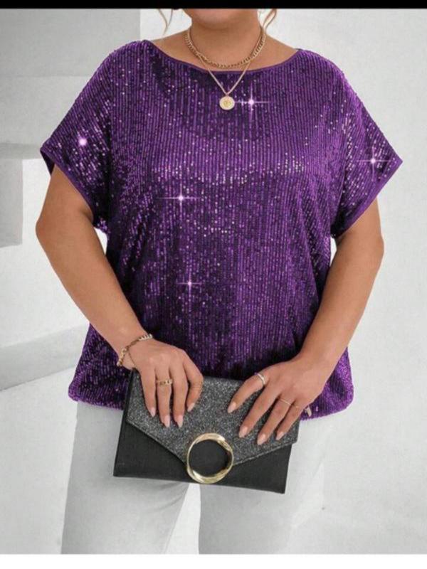!!!Первое фото как пример-не является товаром!!!Жественная блуза -футболка с пайетками известного бренда SHEIN,фиолетового цвета. Изготовлен из комфортного эластичного трикотажа. Эта блуза имеет круглый вырез горловины и простые короткие рукава. Блуза расшита пайетками. Замеры:- рукава от горловины -66см,под подмышками-68 см, хорошо тянется ПОГ-63см хорошо тянется,ПОТ-63см хорошо тянется, длина -66см. Погрешность в замерах может быть+-2см. Пересылаю Укрпочту, Новую почта, Безопасной оплаты нет, безопасной доставки. Девочки, блуза на меня большая и поэтому выглядит не так красиво, как блуза будет смотреться на вас, поэтому смотрите на фасон блузы. Дорогие Мои покупатели,я не работаю с "безопасной оплаты". Оплата на МОЮ карточку Приватбанка полная или переплата в ваш город. Отправка сразу после оплаты НП или Укр-почттой. Пожалуйста, уточитесь сначала в листировании., чтобы избежать недопонимания.бодрствуй за понимание.