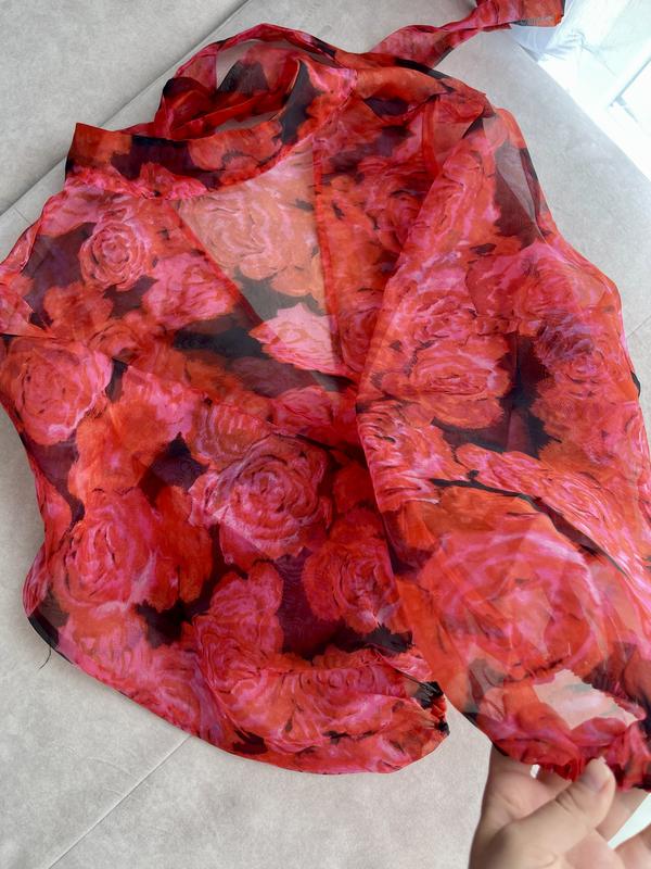 Стан нової Елегантна Обʼємна прозора блуза у квітковий принт На розмір М/Л