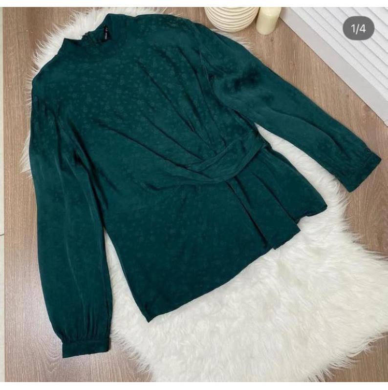 Зелена смарагдова приталена блуза в ідеальному стані святкова блузка зі стієчкою дуже гарн...