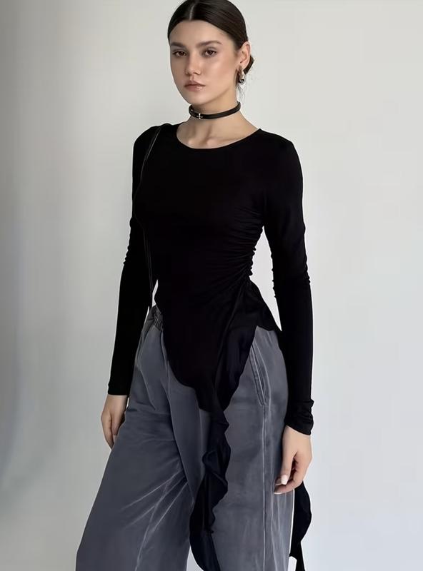 Реглан актуальний з цікавими деталями, подовженими асиметричними рюшами, новий.