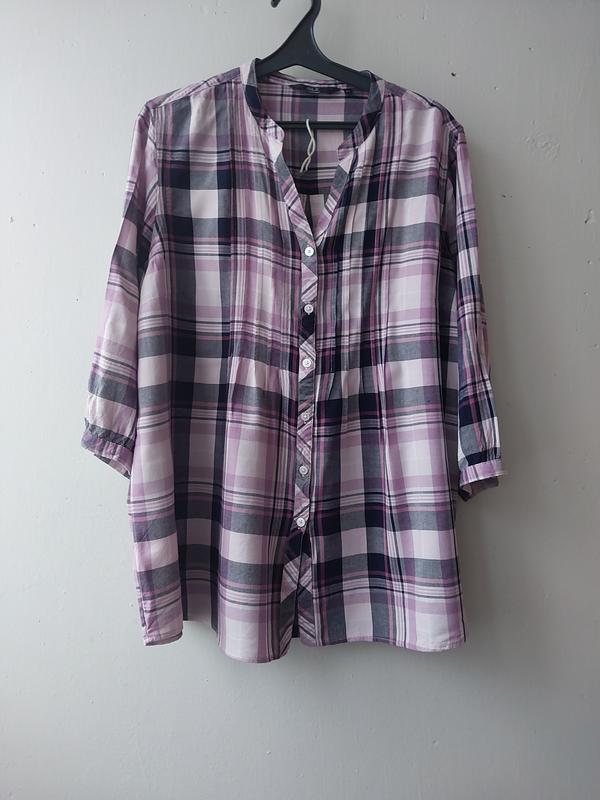 Женская блуза в клетку в отличном состоянии. Длина 72 см, по груди 68 см, ширина по низу 73 см, рукав 45 см.